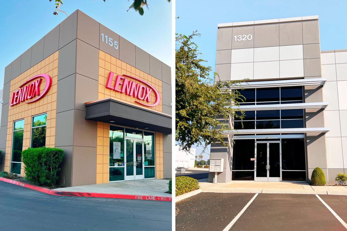 (Αριστερά) Η διεύθυνση 1155 E. North Ave. Suite 101, Fresno, Calif., 83725 χρησιμοποιείται από την Advanced Meditech LLC σε επιχειρηματικές καταθέσεις, αλλά φαίνεται να έχει νέο ενοικιαστή, την «Bella» – 23 Σεπτεμβρίου 2023. (Ping Chen/The Epoch Times). (Δεξιά) Η διεύθυνση 1320 E. Fortune Ave. Suite 102 Fresno, Καλιφόρνια, 93725, χρησιμοποιείται από την Advanced Meditech LLC σε επιχειρηματικές καταθέσεις, αλλά φαίνεται να είναι ένα άδειο κτίριο – 23 Σεπτεμβρίου 2023. (Ping Chen/The Epoch Times)